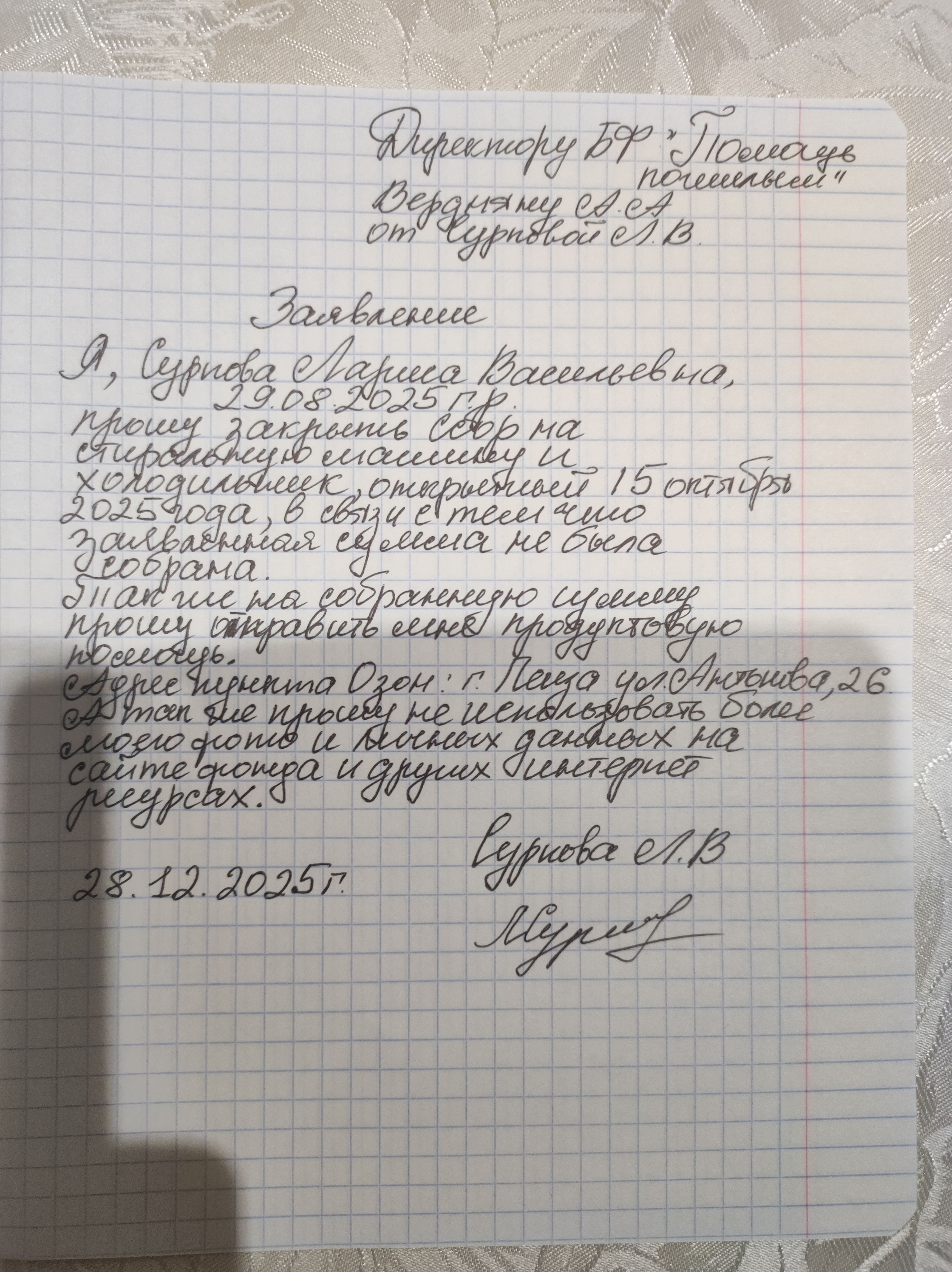 Самостоятельно приобрести холодильник и стиральную машину Лариса Васильевна не может. В связи с чем и обратилась за помощью к нам.